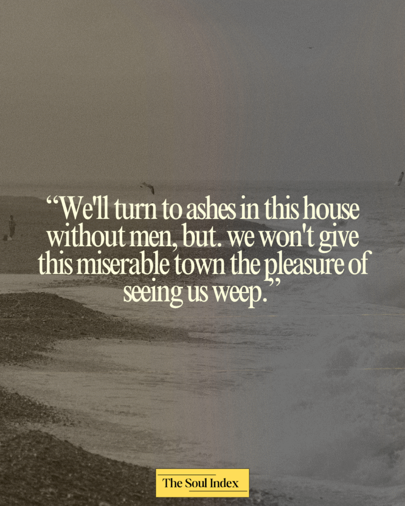 34. “We’ll turn to ashes in this house without men, but. we won’t give this miserable town the pleasure of seeing us weep.”